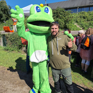 Jag fick också chansen att få en bild med Signal The Frog som är geocachingens maskot. Riktigt kul!